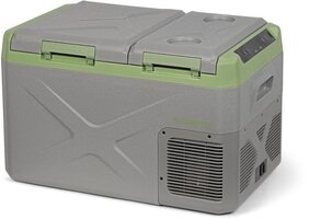 De combinatie van een verfijnde grijze tint met afgewerkte groene accenten geeft een eigentijdse uitstraling aan deze stevige koelbox. Overal rondom is de koelbox geïsoleerd met schuim, wat zorgt voor een uitstekend temperatuurbehoud. Aan de bovenkant bevinden zich twee afzonderlijke deksels, waardoor u elk compartiment apart kunt openen en sluiten. Het LCD-scherm aan de zijkant biedt controle over beide compartimenten. De gegoten handgrepen aan de zijkanten maken het eenvoudig om de koelbox te verplaatsen of in en uit te laden.