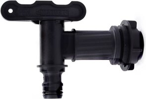 Nature regentonkraan gemaakt van zwart polyethyleen om regenwater af te tappen van de regenton.