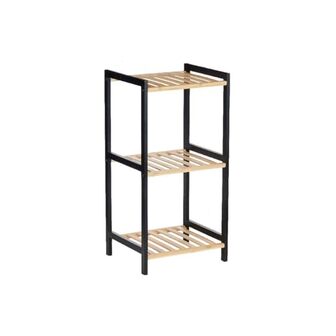 Badkamerrek - 35 x 30 x 70 cm - Natuurlijk Zwart Bamboe Grenen Hout
