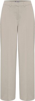 Wijde broek van Ichi met een hoge taille. Dit model sluit met een knoop, twee haakjes en een rits. De broek heeft twee steekzakken aan de voorkant en twee decoratieve paspelzakken aan de achterkant. Lauw strijken max 110°c, Machinewas 30°c, Niet bleken, Niet in de droger, Stomerij