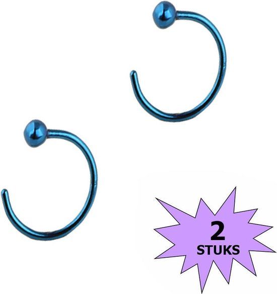 Fako Bijoux® Neuspiercing - Open Ring Bal - 8mm - Blauw - 2 Stuks - Unisex - Lichaamssieraden