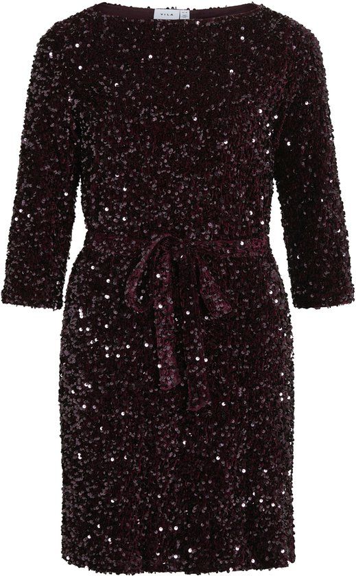 Bekijk productVILA - VIFAITH BOATNECK 3/4 DRESS/R - Dames - Mini jurken - Maat L - Fig - Lovertjes