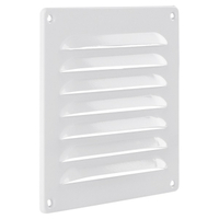 Schoepenrooster, aluminium - Is jouw rooster aan vervanging toe of wil jij een nieuw ventilatiesysteem maken? Dit exemplaar heeft een afmeting van 16 x 16 centimeter en is gemaakt van aluminium. Het witte rooster beschikt over schoepen, hierdoor komt er geen regen in het ventilatiesysteem.Aluminium schoepenrooster van 16 x 16 centimeterEen schoepenrooster maakt gebruik van kappen over een ventilatierooster, zodat regen niet in het ventilatiesysteem kan komen. Doordat het rooster regenwerend is plaats je het rooster op buitenmuren. Hierdoor heb je nog steeds de toe- of afvoer van lucht, zonder dat er water in jouw ventilatiesysteem komt.Eigenschappen: Wit schoepenrooster Gemaakt van aluminium Afmeting: 16 x 16 centimeter