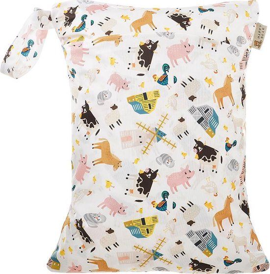 HappyBear Wetbag - Boerderij | 30x40cm - Waterdichte luiertas met 2 vakken