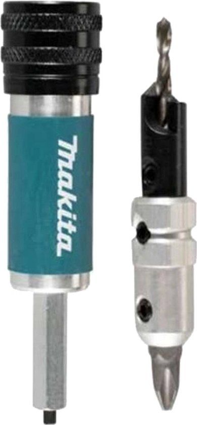 Bijzondere kenmerken * Met de Makita Quad Driver is het mogelijk op eenvoudige wijze meerdere werkzaamheden uit te voeren met een boor-/schroefmachine. * De boorzijde zorgt voor een snel en mooi (verdiept) verzonken boorgat van 3.2mm. Middels de zwarte borgring is de Quad Driver vervolgens snel om te draaien. * Met de PH2-schroefzijde is voorts in een handomdraai een schroef van 5mm in het materiaal te draaien. * Aan de onderzijde van de Quad Driver bevind zich een imbussleutel. * Hiermee kan eventueel naar wens de boor vervangen worden door een andere diameter of de schroefbit worden vervangen door een andere passing in 25mm zeskant vorm c.