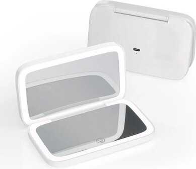 Deze slanke, moderne spiegel is compact genoeg om overal mee naartoe te nemen, maar krachtig genoeg om make-up zonder bril mogelijk te maken. De opvouwbare compacte spiegel heeft 2 glaspanelen met 1x en 5x vergroting en is helder van rand tot rand zonder vervorming. Het is uitgerust met daglicht-LED's die het natuurlijke zonlicht nauw nabootsen om u te voorzien van het natuurlijke licht dat u overdag kunt tegenkomen - zodat u er op uw best kunt uitzien waar u ook bent.