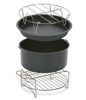 Easy Fry XXL accessoires: Breid je Easy Fry XXL uit met de taartvorm, de pizzaplaat, rooster voor vleespennen en de metalen houder. Bak vanaf nu heerlijke pizza, quiches, desserts of cakes in de Easy Fry. Geniet van alle extra mogelijkheden! Accessoires met diameter 20 cm, Voor 8 personen, Bakken met weinig of geen olie, Geschikt om te reinigen in de vaatwasmachine.