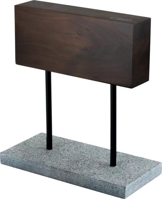 Met het magnetisch memessen blok van Style de Vie kan je eenvoudig de messen ophangen. Het blok is van walnotenhout en de voet van natuursteen. Op het magnetische messenblok is aan beide kanten ruimte voor 5 keukenmessen.