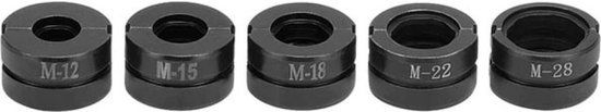 - De volgende maten zitten in de set: 12mm, 15mm, 18mm, 22mm en 28mm