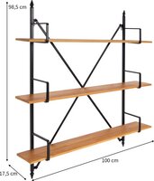 Het Rassa wandrek van Baytex heeft een industrieel design met 3 houten planken en een zwart metalen frame. Het industriële wandrek heeft een hoogte van 98,5 cm.