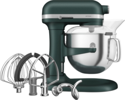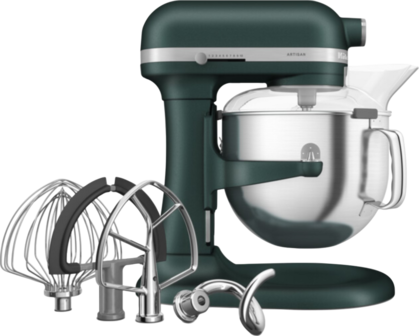 Met de KitchenAid Artisan Bowl-Lift 5KSM70SHXEPP Pebbled Palm keukenmixer verstel je gemakkelijk de hoogte van de mengkom. De mixer heeft een directe aandrijving met een krachtig vermogen van 375 watt. Hierdoor heb je weinig vermogen nodig voor dezelfde kracht zoals keukenmixers van andere merken. Handig, als je brood- of pizzadeeg wilt kneden. Het antispatdeksel voorkomt dat beslagspetters tijdens het mixen je aanrecht vies maken. Bij de keukenmixer krijg je 4 verschillende opzetstukken meegeleverd. Je bedient de mixer met de 11 snelheidsstanden. Zo bouw je de snelheid langzaam op. Na gebruik reinig je de accessoires in de vaatwasser.