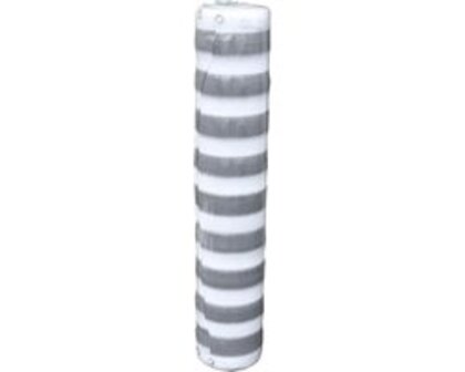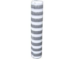 Balkonscherm van 25 meter in de kleur grijs en wit. Het balkonscherm is 90 cm hoog en heeft horizontale strepen