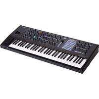 Al tijden waren er de geruchten, en nu lijkt 't toch een feit te zijn: de Arturia PolyBrute synthesizer! De kenners hadden natuurlijk al gezien dat deze PolyBrute wel wat lijkt op de populaire MatrixBrute. Het zijn allebei knoeperds van synths, afgeladen met bedieningselementen. De PolyBrute heeft echter een octaaf meer en is met 61 toetsen dus het betere werk voor toetsenisten. Wat gelijk opvalt is een ongebruikelijke controller links van de toetsen, waar normaliter de pitch- en modulatiewielen zitten. Dit is de 'morphée', een controller die drie dimensies aanstuurt. Het geheel is een traditionele X/Y-pad, maar je kunt 'm ook indrukken. Dat indrukken vormt dus de derde controller. In combinatie met de uitgebreide modulatiematrix kun je hier zeer expressieve klanken mee maken. Boven de toetsen zit nog een ribbon-controller, die net als de morphée helemaal opgaat in de houten behuizing. Je hebt ook nog steeds de traditionele pitch- en modulatiewielen,