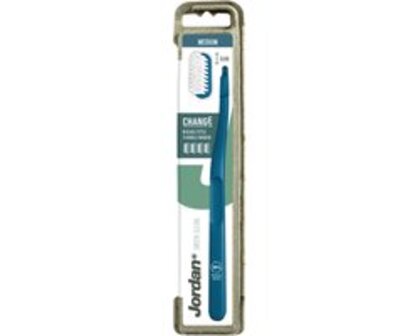 plaats de nieuwe met een simpele klik. De verpakking van de tandenborstel is gemaakt van gerecyclede papiervezels en is daarmee 100% plasticvrij. Tandartsen en mondhygiënisten adviseren om een tandenborstel iedere drie maanden te wisselen. Jordan Change 4-pack wordt geleverd met één handvat en vier vervangbare borstelkoppen.