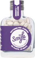 Smyle Toothpaste Tablets Whitening Pro zijn tandpasta tabletten die op een milde wijze helpen tandplak en oppervlakkige vlekken te verwijderen, zodat u kunt genieten van een wittere en stralende glimlach. De toegevoegde fluoride biedt een extra beschermingslaag tegen cariës en helpt tandsteen te voorkomen. Ervaar wittere tanden, voorkom tandsteen en geniet van een heerlijk frisse adem met deze vegan, plasticvrije tabletten die PETA-gecertificeerd zijn.