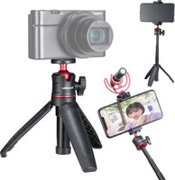 For Digital Cameras & Smartphones, 1/4" Mount with Lockable Ball Head, Foldable Legs with up to 10.6" Extension, Silica Nonslip Grip on Each Leg Add versatility in your mobile photography with this MT-08 Extendable Mini Tripod and Handle from Ulanzi. The MT-08 can be converted into a mini tabletop tripod a selfie stick and a handle for both digital cameras and smartphones (smartphone clamp required and not included). Your device mounts to a standard 1/4 tripod screw that sits on a fully adjustable and lockable ball head. Extend the three small legs to use the MT-08 as a mini tripod for Zoom calls or to have a stable platform for macro photography. Fold the legs in and use it as a handle to more easily film or vlog while on the go. Silica embedded on each leg provide a nonslip grip. The tripod can extend to 10.6 allowing you to use it as a selfie stick as well. When retracted and folded the MT-08 is a very compact and portable 5.9 in height.