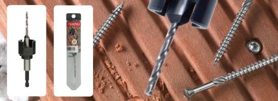 Professionele houtspiraalboor welke onmisbaar is bij het voorboren van vlonderplanken en hardhout.G-Deck hulpstuk voor het plaatsen van terrasschroeven