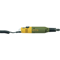 With a diameter of only 35mm it is unsurpassed easy to manage. Besides the weight of only approx. 230g, the effortless drive via balanced motor with ground spindle and collar bearing allows for quiet run with a pleasing sound to the ear. The high-quality MICROMOT steel collets ensure accurate clamping of the cutters, without rattling or vibrating of bits and cutters. The size of the machine dictates a 12V drive system, use of a mains adapter of at least 1.0A is thus required. We recommend MICROMOT mains adapters NG 2/S, NG 2/E or NG 5/E.\n\nVariable speed control from 5,000 - 20,000rpm.\nSpecial balanced, low noise DC motor with high life expectancy. Variable electronic speed control with feedback effect (high engine power also at lower speeds). High precision due to ball bearing spindle. Housing of glass-fibre reinforced POLYAMIDE with soft component in the finger grip area. 20mm-collar for fitting MICROMOT accessories. Six MICROMOT steel collets (one each of 1.0 - 1.5 - 2.0 - 2.4 - 3.0 and 3.2mm) are included.