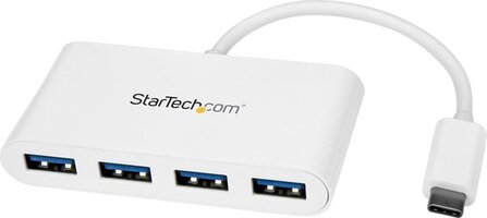 Met deze draagbare USB 3.0 hub breidt u de connectiviteit van uw laptop of desktop uit door vier USB Type-A poorten via één USB Type-C™ of Thunderbolt™ 3 poort toe te voegen. En vanwege de USB-busvoeding hoeft u geen externe voedingsadapter aan te sluiten, waardoor u comfortabeler reist en de kabelwarboel op uw werkplekken wordt verminderd.\n\nNeem hem met u mee waar u ook heen gaat.\nDankzij zijn compacte en robuuste design kunt u deze draagbare USB-C™ hub overal met u meenemen. Hij kan gemakkelijk in uw laptoptas worden opgeborgen en neemt slechts weinig bureauruimte in beslag wanneer u hem aansluit op uw werkplek.\n\nBovendien is de hub voorzien van busvoeding, d.w.z. dat hij direct vanaf de USB-C poort van uw computer wordt gevoed. Daardoor is hij zelfs nog mobieler omdat u minder kabels hoeft mee te nemen wanneer u reist en hij heeft geen externe voedingsadapter nodig.\n\nBehoud uw huidige randapparaten en apparaten\nAls u de levensduur van uw bestaande USB-A randapparaten wilt verlengen, is deze hub de perfecte oplossing. Door een USB-C poort in vier USB-A poorten te converteren, kunt u al uw bestaande USB 3.0 apparaten zoals flashdrives, externe harde schijven en printers blijven gebruiken. Nu kunt u geld besparen doordat u geen nieuwe met USB-C uitgeruste randapparaten hoeft te kopen.\n\nVoeg vier USB 3.0 poorten toe in slechts enkele seconden\nDeze USB-hub is compatibel met meerdere platformen, waardoor hij geschikt is voor vele verschillende laptops. Hij werkt ook met diverse besturingssystemen zoals Windows®, Mac, Linux® en Chrome OS™. Hij wordt automatisch geïnstalleerd zodra u hem op uw laptop aansluit, en is dus gebruiksklaar in slechts enkele seconden.\n\nDe HB30C4ABW wordt gedekt door een 2-jarige garantie en gratis levenslange technische ondersteuning van StarTech.com.