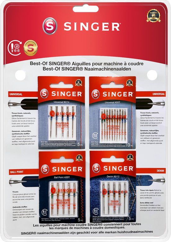 Wanneer je op zoek bent naar nieuwe naalden voor je naaimachine, is de 'Singer naalden promo pack a4' een degelijke keuze. Met dit pakket haal je een variëteit aan naaimachinenaalden in huis om te zorgen dat je altijd de juiste naald voor het klusje hebt.Kwaliteit van Singer
