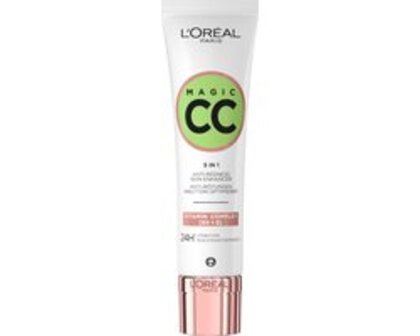 Jouw vertrouwde CC cream van L’Oréal Paris heeft een nieuwe verpakking en een nieuwe naam: CC C’est Magic:\n- Corrigeert roodheid voor een natuurlijk ogend resultaat\n- Hydrateert de huid tot 24 uur\n- Met zonbescherming SPF 20\n\nProductbeschrijving\nDe CC C'est Magic heeft een identieke formule als die van de CC cream Glam Nude. De CC C’est Magic CC cream, color correcting cream, egaliseert rode tinten in de huid doordat de formule groen gekleurd is. Hierdoor lijkt de huid egaler en vallen rode plekjes minder goed op. Rood en groen zijn namelijk complementaire kleuren waardoor je met de CC cream de rode vlekken op de huid minder goed zichtbaar maakt. \n\nCC C’est Magic is ultra licht en niet vet waardoor de crème fijn aanvoelt op de huid en goed door de huid wordt geabsorbeerd. De CC cream formule bevat verder intelligente Color-OsmoseTM pigmenten. Deze pigmenten breken open als de CC cream in contact komt met de huid waardoor de kleur van de crème veranderd en roodheden geegaliseerd worden. De CC C’est Magic CC cream hydrateert de huid tot 24 uur en bevat daarnaast SPF 20 om schadelijke invloeden van UV-straling te verminderen. \n\nHet resultaat\nEgaliseer de huidskleur van de gezichthuid door de CC cream over de huid aan te brengen. De C’est Magic CC cream geeft een natuurlijke dekking, hydrateert de huid tot 24 uur en bevat SPF 20 om de huid tegen schadelijke UV-stralen beschermen. \n\nHoe te gebruiken\nStap 1: Breng de CC cream aan over het gehele gezicht met de vingertoppen en blend goed met de huid.\nStap 2: Als je extra lokale dekking nodig hebt op oneffenheden gebruik je een concealer om de laatste verkleuringen te egaliseren.