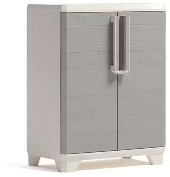 Geschikt voor het ordenen en opbergen van gereedschap, schoonmaakmiddelen, benodigdheden, documenten en spelletjes. Verstelbare poten, hangslotvoorziening en verstelbare plank. UV-bestendig.