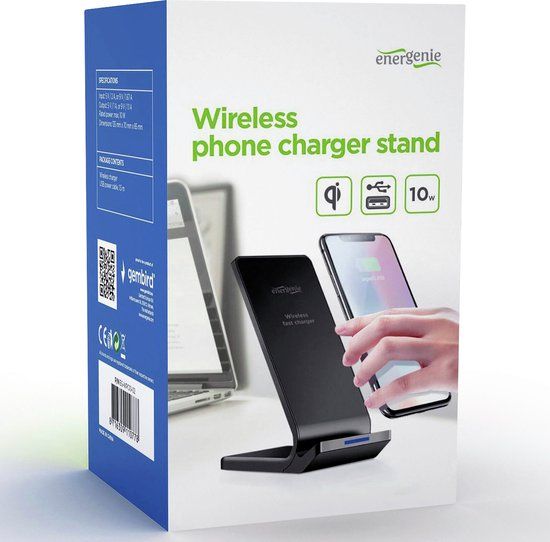 Gembird Draadloze QI lader Standaard 10Watt - Zwart - Oplaadpunten