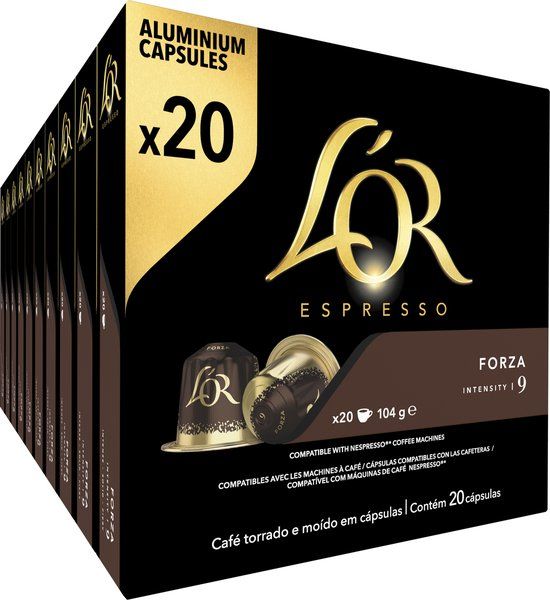 L'OR Espresso Forza Koffiecups - 200 capsules - Intensiteit 9/12 - Nespresso & L'OR Barista Compatibel