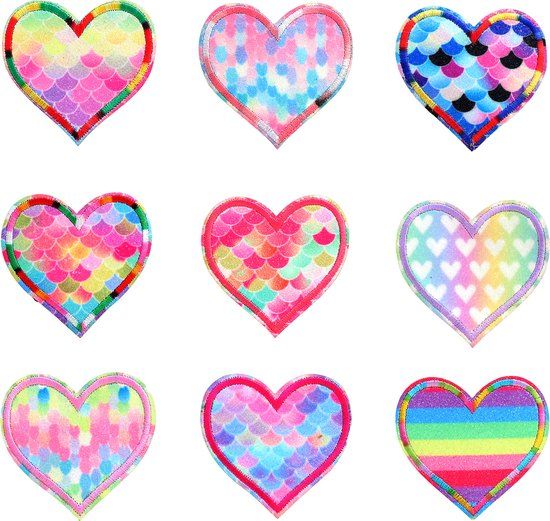 Rainbecom - 9-delige set - Patches - Strijk Embleem - Hartvorm - 15x15cm - Opnaaibare lapjes