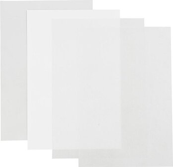Krimpfolie, vel 20x30 cm, 4 vellen, Transparant glans, Mat wit, mat transparant