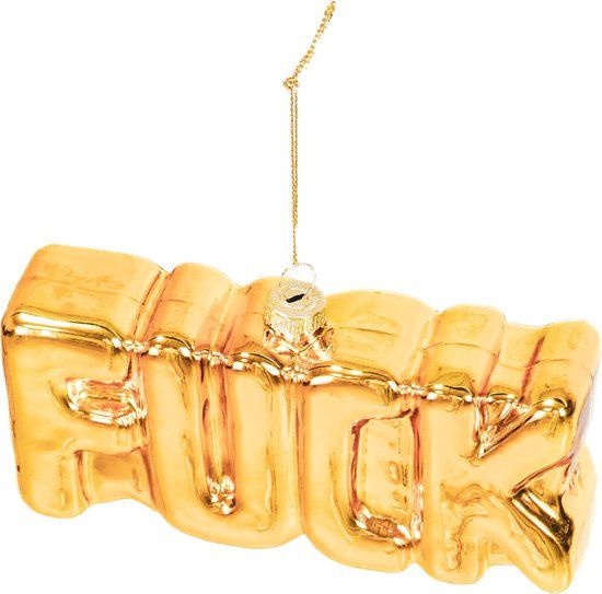 Housevitamin FUCK Kerstornament - Set van 2 - Goud - Glas - 14,5 x 3,5 x 7,5 cm
