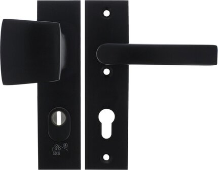 Bekijk productSTARX Veiligheidsbeslag - Deurbeslag Zwart - Duwer/Kruk - Kortschild - PC72 mm - Platte schoenen