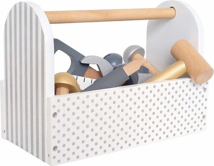 Jabadabado Houten Gereedschapskist Zilver - 22-delig - Grijs/Hout - Play Doh-gereedschapssets