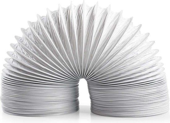 PVC-slang voor het afvoeren van stoom van droogtrommels en ventilatiesystemen in toiletten, badkamers, woonkamers etc. De flexibele slang heeft een diameter van 100 mm en kan worden uitgerekt tot een maximale lengte van 1,50 m.