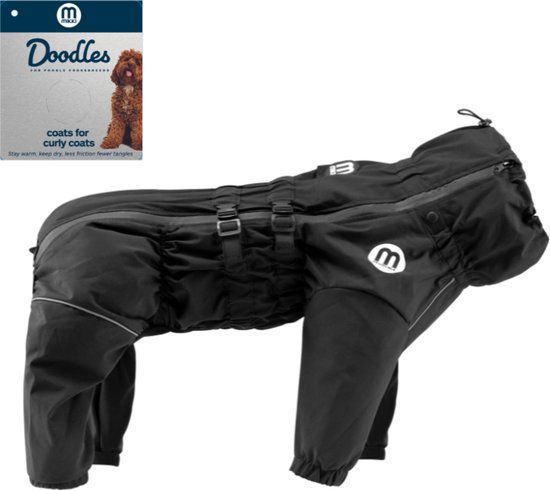 De perfecte jas voor krullende vachten! Minder wrijving, minder klitten: - Zijden voering om door wrijving veroorzaakte knopen en klitten op gekrulde jassen te verminderen Nauwsluitend: - Water- en winddicht, ademend materiaal met gesealde naden om koud, nat weer te weerstaan - Volledig verstelbaar rond de nek, taille en benen voor een nauwsluitende en beschermde pasvorm - 4-poots ontwerp voor het hele lichaam met sanitaire voorziening voor schoon toiletgebruik Veiligheid voorop: - Loodbevestigingspunt op de rug, waardoor een halsband of harnas eronder gedragen kan worden - Reflecterende veiligheidsstrips voor wandelingen in de donker - Machinewasbaar op lage temperatuur
