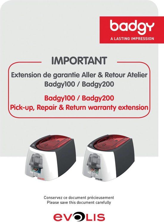 Badgy garantie uitbreiding voor badgy printers, 1 jaar