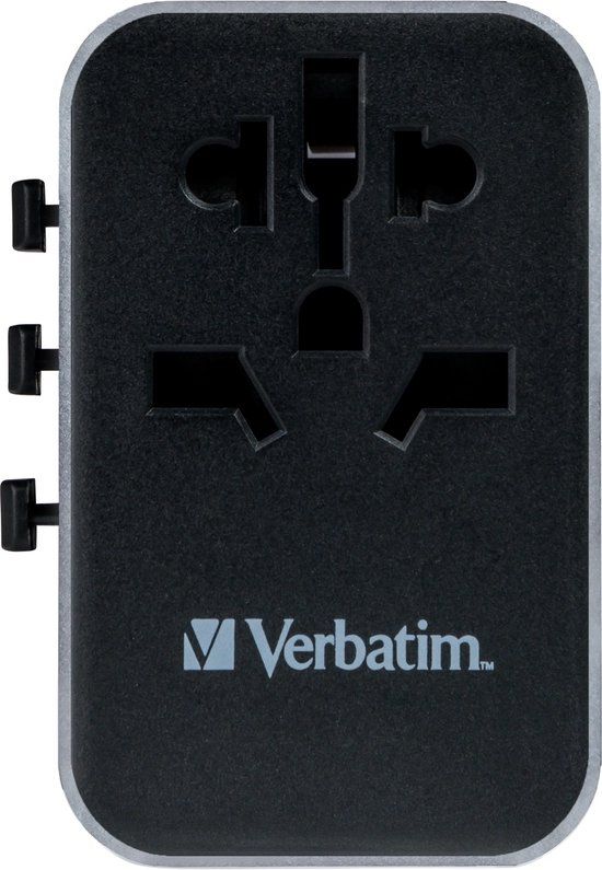 Wereldwijd inzetbare reisstekker De Verbatim universele reisstekker kan in meer dan 180 landen worden gebruikt - neem hem overal mee naartoe en u zit nooit zonder stroom. Dankzij deze World-to-World meervoudige stekker kunt u uw energieverslindende apparaten zoals laptops of batterijen voor camera's overal ter wereld met elk stroomnet verbinden en weer opladen. Met de USB-C- en USB-A-aansluitingen aan de onderkant kunt u al uw USB-apparaten opladen, zoals smartphones, Bluetooth-luidsprekers, tablets, powerbanks en Kindle E-book-reader. Supersnel 6-in-1 laden De compacte en krachtige universele reisstekker maakt gelijktijdig opladen van zes apparaten via de wisselstroomcontactdoos en de twee USB-A- en drie USB-C-aansluitingen mogelijk. Deze adapter laadt supersnel op door een krachtige USB-C-aansluiting die Power Delivery (PD) 61 W en Quick Charge (QC) ondersteunt. De drie meest gangbare internationale stekkers - Euro, UK en US - komen gewoon door het schuiven van de regelaars naar voren en de stekkers voor Australië of China zijn door het eenvoudig ronddraaien van de polen beschikbaar. Compact en betrouwbaar Deze universele adapter is CE-, UKCA-, FCC- en RoHS-gecertificeerd en bestaat uit hoogwaardig, vuurbestendig polycarbonaat. Hij is perfect voor dagelijks gebruik op reis. Hij is uitgerust met veiligheidsafdekkingen die alleen met een kracht van meer dan 75 N (7,5 kg) per opening kunnen worden geopend en met een zekering conform BS 1362 (inclusief een reservezekering). U kunt dus onbezorgd zijn, waar uw weg u ook naartoe mag leiden.