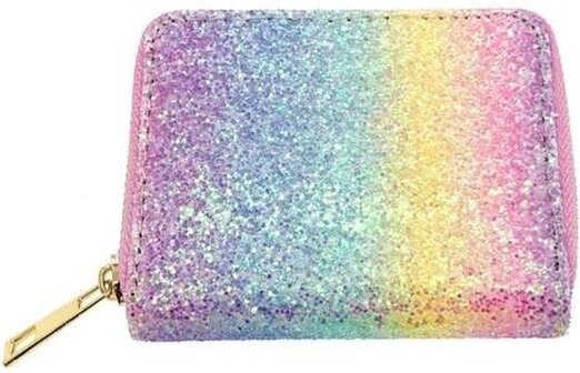 Deze glitter portemonnee is een onwijs leuk accessoire voor meisjes die van regenboog kleuren en glitter houden!