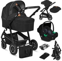 LIONELO Bianka 3-in-1 Kinderwagen Set - Zwart - incl. autostoel - 0-22kg - XXL - Buggy 3in1 - Verstelbare duwstang - Opvouwbaar - Accessoireset - XXL zonnekap - Gelagerde wielen - Reiswieg - Reissystemen