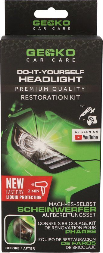 De D.I.Y Gecko Koplamp herstelset is ontworpen om ernstige aantasting van koplampen, zoals vergeling, oxidatie en krassen te verhelpen. De set bevat alles wat u nodig heeft om zelfs de meest doffe koplampl