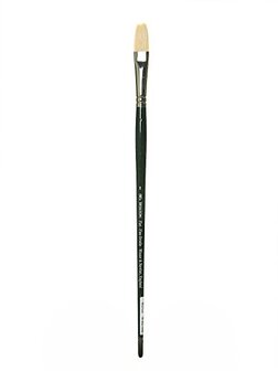 Het Winsor & Newton olieverfpenseel (nummer 8) heeft een platte penseelpunt met lange haren. De kwast is geschikt voor schilderen met olieverf, maar is ook te gebruiken voor acrylverf. De lange, platte borstelharen zijn ideaal voor het mengen van kleuren, het toepassen van glaceertechnieken en het bedekken van grote oppervlakken. De punt, gemaakt van varkenshaar, is extra sterk, veerkrachtig en flexibel. - Winsor & Newton Winton olieverfpenseel plat (nummer 8)