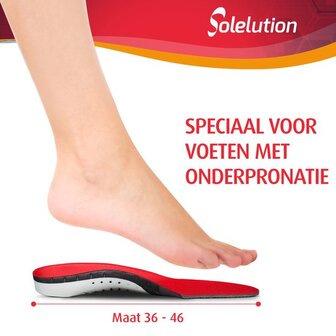 De Solelution Onderpronatie zolen (voet staat naar buiten) zolen zijn door internationaal vooraanstaande podologen speciaal ontwikkeld voor mensen die veel staan, lopen of sporten en behoefte hebben aan optimale stabiliteit en optimale schokdemping bij o.a. onderpronatie en zullen optimale steun aan de buitenkant van de voet bieden. De zolen worden dan ook gezien als de beste zolen voor onderpronatie van dit moment en zijn daarvoor door voetspecialisten dan ook o.a. voor ontworpen.