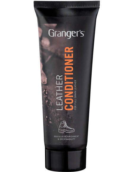 - Formulated to provide all-round protection to leather footwear.\n- Help protect against water and oils.\n- Maximises the breathability of leather footwear.\n- A bluesign® system approved product.\n\nGrangers Leather Conditioner is a traditional conditioning product designed to add rain and stain protection to all leather footwear.\n\nKeeping your leather boots looking and performing at their best can be something of a challenge. Boots and shoes are arguably the most hardworking element of any outdoor kit, and this means that they need to be maintained regularly. Leather footwear is worse - without extra care it can dry out, crack, and become incredibly uncomfortable to wear.\n\nFortunately, providing much-needed protection to leather footwear is easier than ever with Grangers Leather Conditioner. Incredibly easy to apply due to its softer formulation, this product provides good water-repellency and nourishment without impairing the breathability of your footwear. Simply apply sparingly to clean footwear before rubbing in to condition and restore all smooth leather products.\n\nGrangers Leather Conditioner is a highly breathable conditioning cream suitable for use on all smooth leather footwear and accessories – including those with Gore-Tex® or eVent membranes.