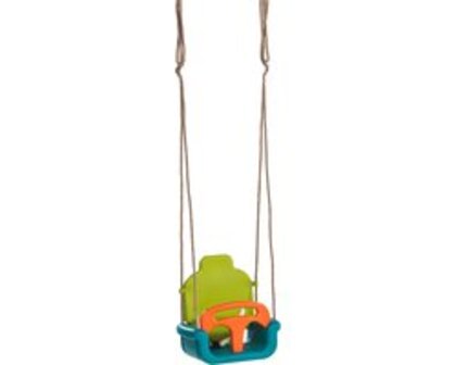 Het babyzitje ‘groeimodel’ van AXI is een babyzitje van topkwaliteit dat jaren schommelplezier garandeert. De verstelbare babyschommel groeit met je kindje mee van babyzitje tot gewoon schommelzitje. Het zitje bestaat uit 3 delen die je gedurende de groei van je kleine avonturier eenvoudig kunt verstellen. Baby’s worden door de veiligheidssteun optimaal beschermd. Wanneer je kindje groter is, kun je de steun makkelijk demonteren, waardoor een kleine schommelstoel ontstaat. Je kindje blijft dan door de veiligheidsriem met gesp veilig in het zitje schommelen. De rugsteun kan al naar de grootte van je kindje in twee posities ingesteld worden. Zodra je kind groot genoeg is, kun je de rugsteun helemaal weghalen. Het babyzitje is van hoogwaardige kwaliteit. De ringen en stelachten zijn vervaardigd in gegalvaniseerd staal. De lassen op de touwen zijn gemaakt van PP. Veilig spelen. Ons speelgoed is voorzien van een CE keurmerk en is getest en geproduceerd volgens EN 71 veiligheidsnormen zodat veilig speelplezier gewaarborgd is.