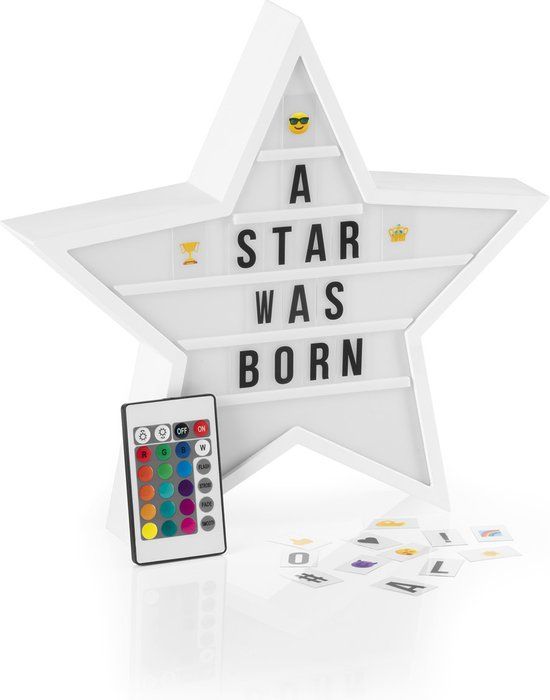 Easymaxx LED Lichtbak Ster - Met 173 Letters, Cijfers, Symbolen & 150 Emoji's - Wit