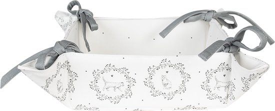 Clayre & Eef Broodmand 35x35x8 cm - Wit Grijs Katoen Kat - Serveerschalen