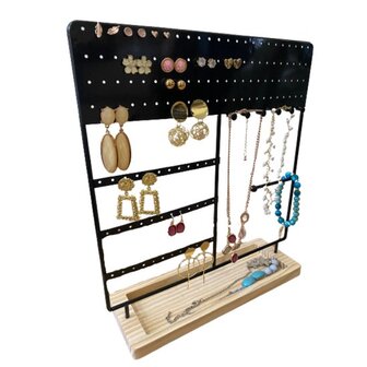 Staalsmid Sieradenrekje Zwart - Sieraden display - Sieradenstandaard - Unisex - Metaal/Hout - Sieradendozen
