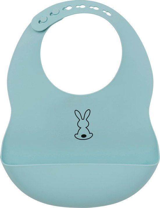 Stressvrij eten en voederen: Nattou lichtblauw slabbetje van flexibele siliconen met schattig konijnenmotief en praktische opvangbak, voor baby's en peuters