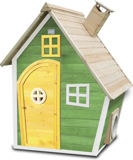 Welk kind wil er nu geen eigen speelhuisje? Een geweldige plek om te spelen, samen met je broertje of zusje, vriendje of vriendinnetje. En de EXIT Fantasia 100 is wel meteen een prachtig huisje! Met zijn vrolijke groene kleuren, asymmetrische ramen en deuren en zelfs dakramen is dit fantasierijke speelhuisje de droom van ieder kind vanaf 3 jaar.\n\nDuurzaam\nDe huisjes zijn gemaakt van gedroogd cederhout. Dit is een bijzondere houtsoort omdat het van nature bestand is tegen weersinvloeden en vocht en dus resistent is tegen houtrot. Het cederhout is dus niet behandeld met ongezonde chemicaliën, zoals dat bij grenen of vuren wel vaak het geval is. Cederhout is dus goed voor het milieu en veilig voor de kinderen. De panelen zijn reeds geverfd met een watergedragen beits.\n\nVeilig\nDe huisjes voldoen aan de actueel geldende veiligheidsnormen (EN-71) zodat veilig speelplezier gewaarborgd is. Verder is de houtsoort niet behandeld met ongezonde chemicaliën en heeft de houtsoort de prettige eigenschap om niet te splinteren.\n\nEenvoudige montag\nHet huisje is opgebouwd uit voorgemonteerde panelen, waarbij ook de ramen en deuren zijn voorgemonteerd. Een echt prefab-systeem dus. De panelen zijn ook nog eens voorgeboord waardoor het huisje in een handomdraai opgebouwd is.