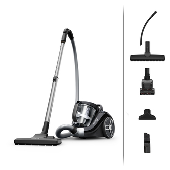 De Rowenta Compact Power XXL is een zakloze cilinderstofzuiger uitgerust met een krachtig vermogen van 900 watt. Deze stofzuiger, ontworpen voor thuisgebruik, beschikt over een droge reinigingsfunctie en een stofreservoircapaciteit van 2,5 liter. Dit model in een strakke zwarte kleur bezit één handvat voor gemakkelijk manoeuvreren en wordt geleverd met een XL flextool mondstuk voor toegang tot moeilijk te bereiken hoeken. Het toestel staat op drie wielen, waarvan één 360° draaibaar voor flexibele manoeuvreerbaarheid. Met een indrukwekkende efficientie van 99,98%, een telescopische metalen stofzuigbuis en drie niveaus van luchtfiltratie, biedt deze cilinderstofzuiger een grondige en diepe schoonmaak. De geluidsniveau ligt op 75 dB. De stofzuigerslang heeft een actieradius van 8,8 meter en wordt aangedreven met een netvoeding (type C stekker). Het apparaat beschikt over een knopbediening en weegt 6,3 kg. Aanvullende hulpmiddelen omvatten een miniturboborstel en spleetzuigmond voor gespecialiseerde reinigingstaken.Reviews